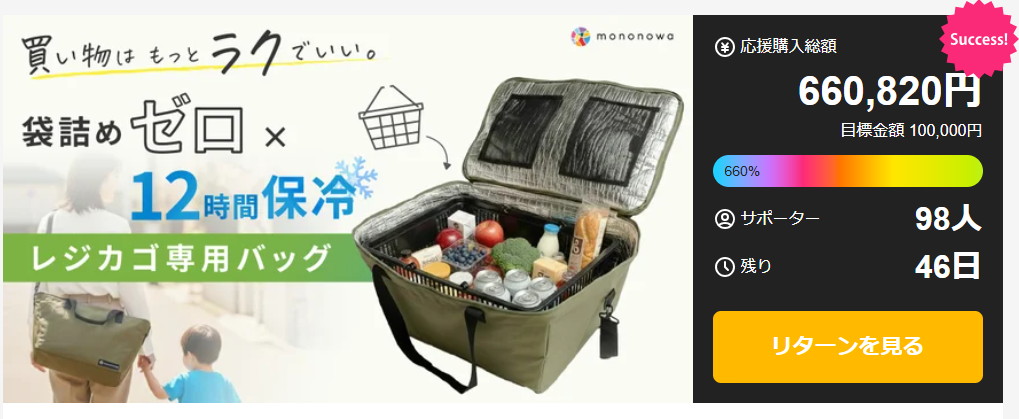 【Calmo Chill】Makuakeにて先行販売を開始しました 2026年1月12日 最終更新日時 : 2026年1月12日 mononowa_admin mononowa 初のプロダクト「Calmo Chill(カルモチル)」は、クラウドファンディングサービス「Makuake」にて先行販売を開始しました。 日々の買い物を、少しだけラクに。袋詰めをしないという選択から生まれた保冷レジカゴバッグです。 プロジェクトの詳細・応援購入は下記よりご覧いただけます。 ▶ Makuake プロジェクトページhttps://www.makuake.com/project/mononowa_calmochill/ \ 最新情報をチェック / FacebookXBlueskyHatenaCopy